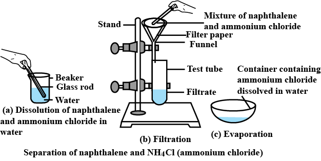 23. You are provided with a mixture of naphthalene and ammonium chloride by your teacher. Suggest an activity to separate them with well-labelled diagram.